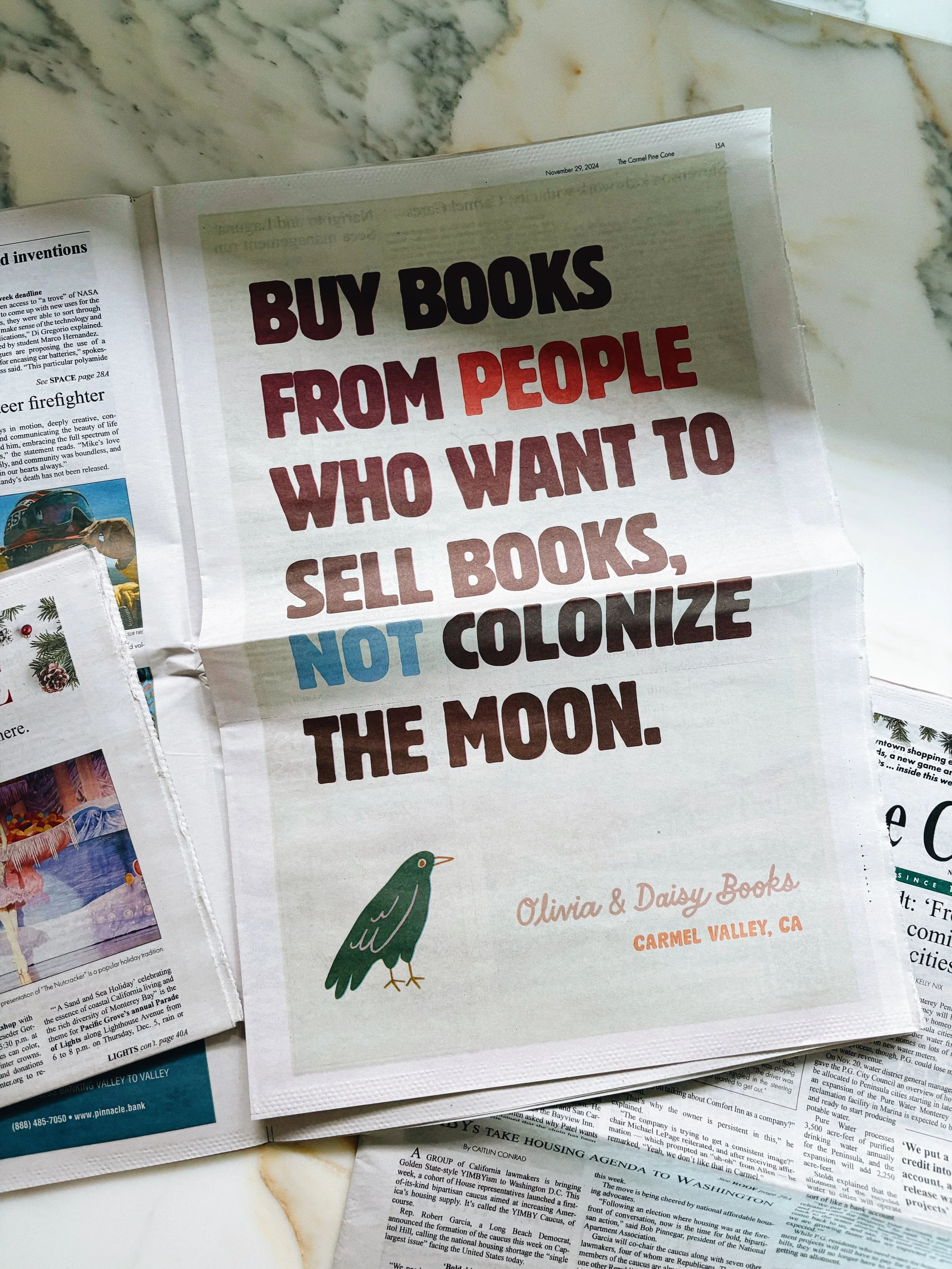 Olivia & Daisy is a bespoke, neighborhood bookshop for all ages in the heart of Carmel Valley Village.
